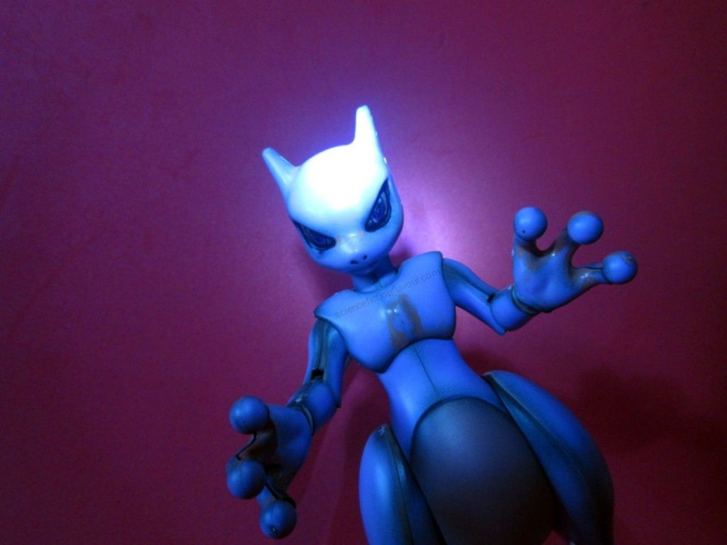 The model is now ready for photography and video, with a red backdrop chosen to highlight Mewtwo’s psychic aura and dramatic presence.